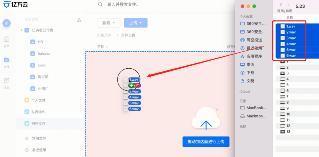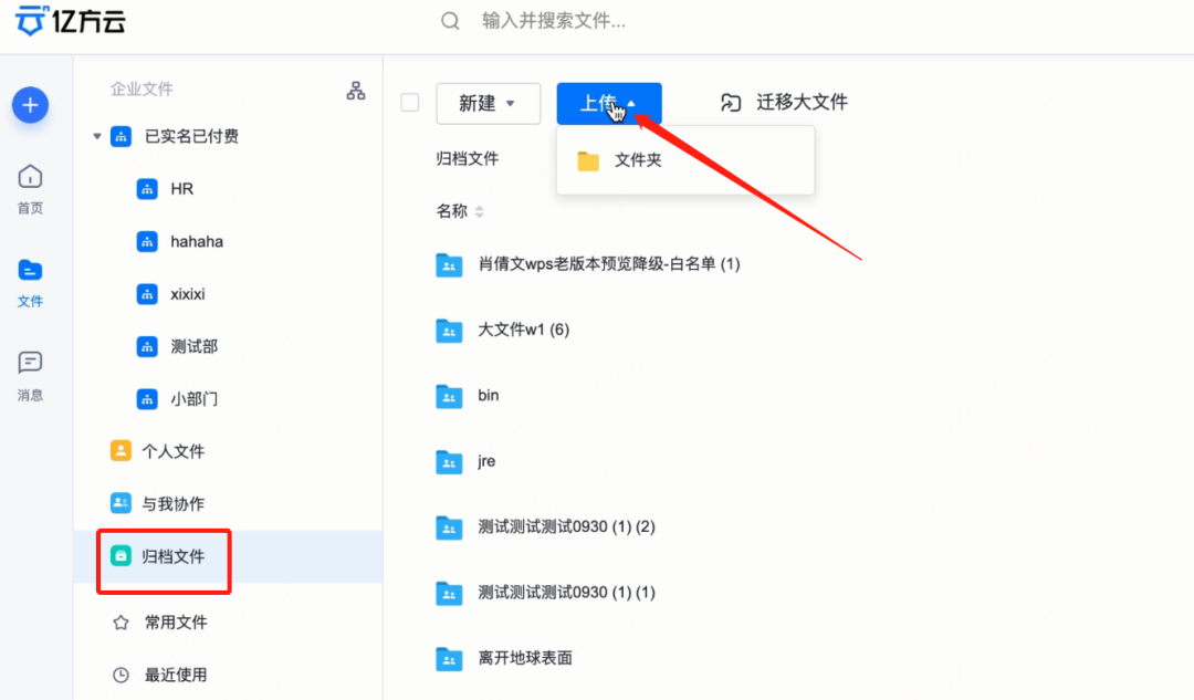 (2)如果想把电脑本地文件存入“归档大空间”,点击【上传】或【拖拽上传】均可;