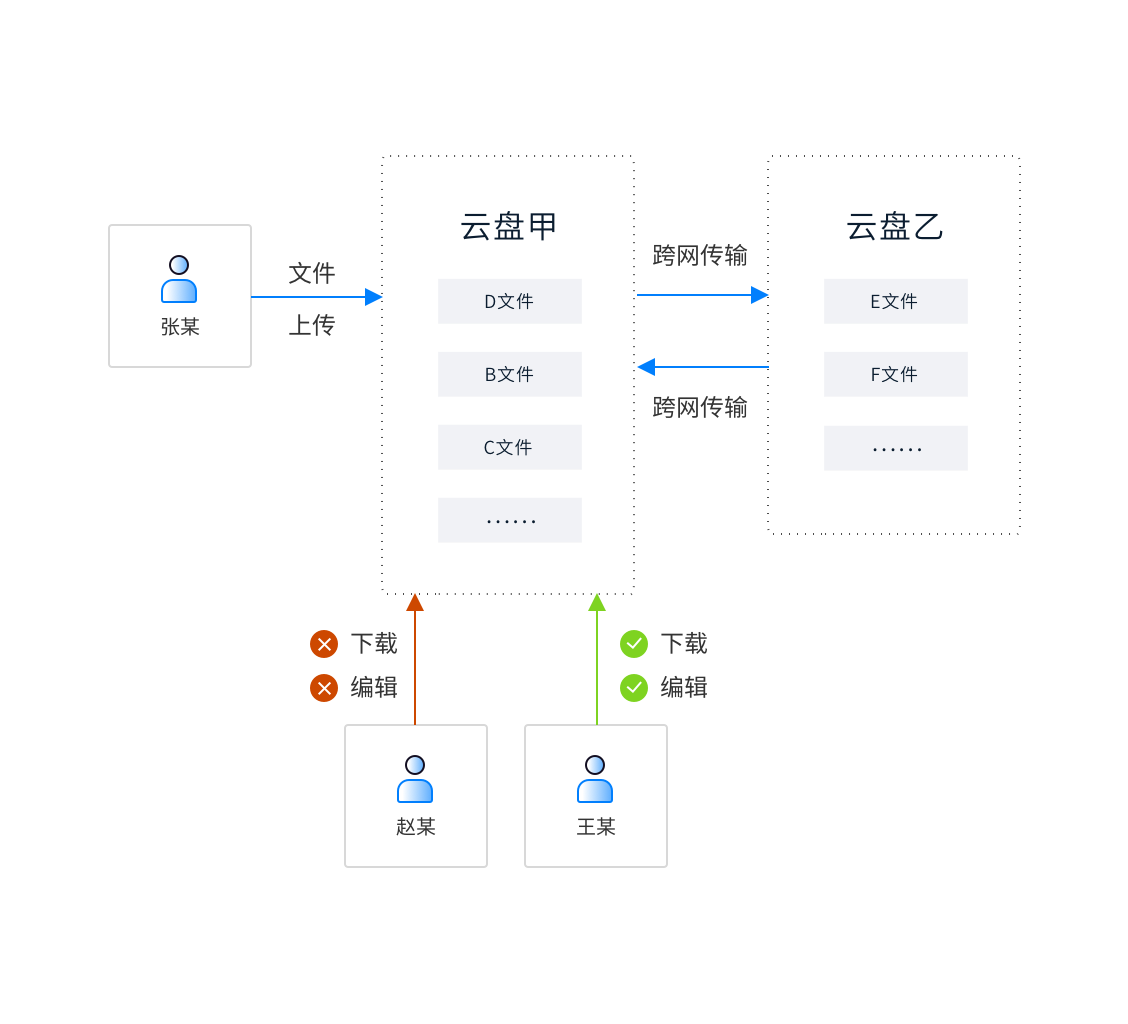 教学视频、课件、学生作品等大文件可以生成链接分享给其他人,对方无需下载亿方云即可直接访问,实现大文件秒速传输。支持对使用者进行7级权限设置,确保文件安全可控。云端重要文件资料不落地,只能进行在线预览等操作,无法复制、下载、分享等,保障文件安全不泄露。网间文件摆渡体系,可以在不改变原有系统架构的前提下,实现安全便捷的文件跨网络交换传输。