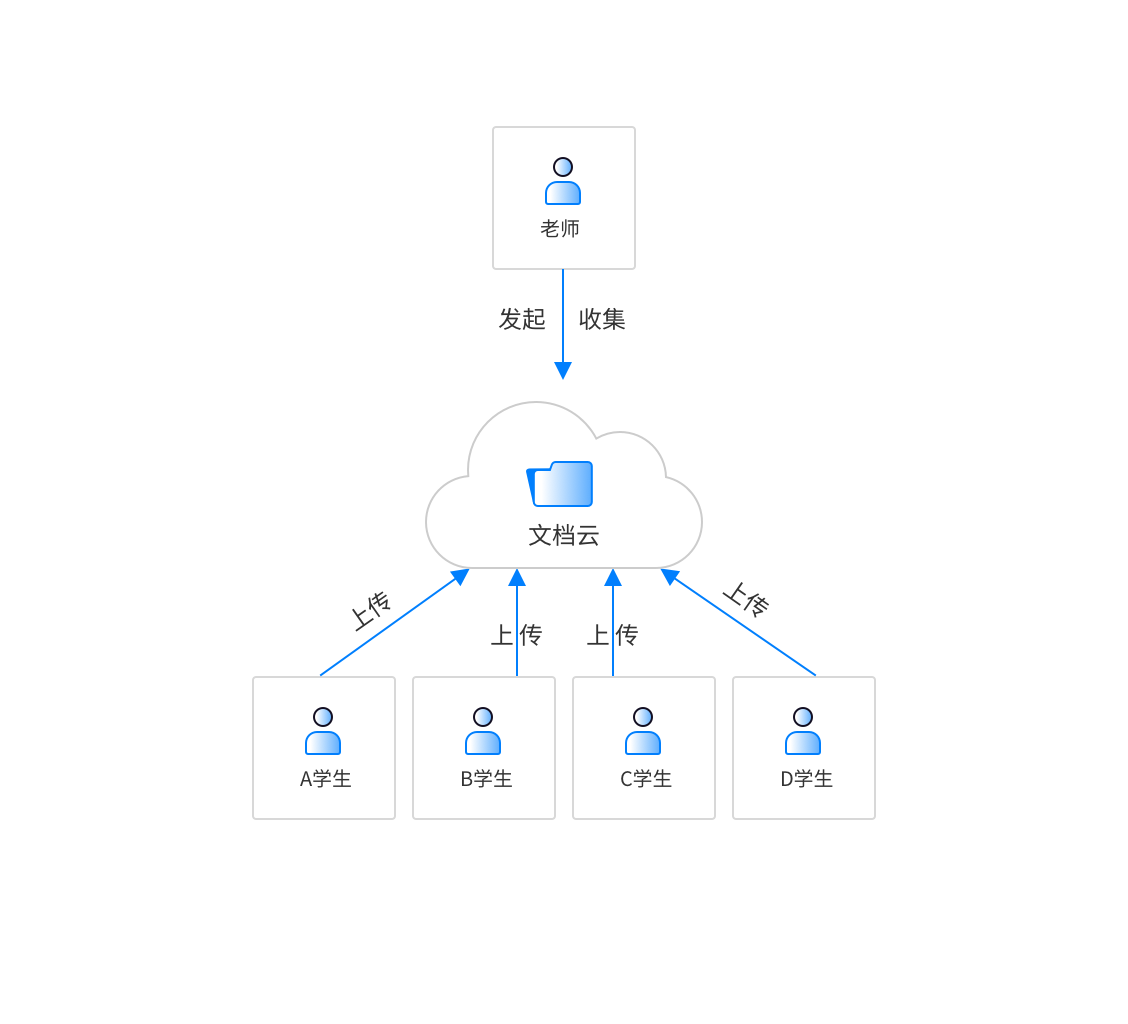 老师可以在360亿方云上创建文件夹,并向学生发起作业收集邀请,学生自行将作业上传至指定文件夹即可,系统自动归档并统计提交进度,大大节省时间和沟通成本。在作业收集过程中,学生们互相之间不能查看他人上传的文件,避免抄袭。