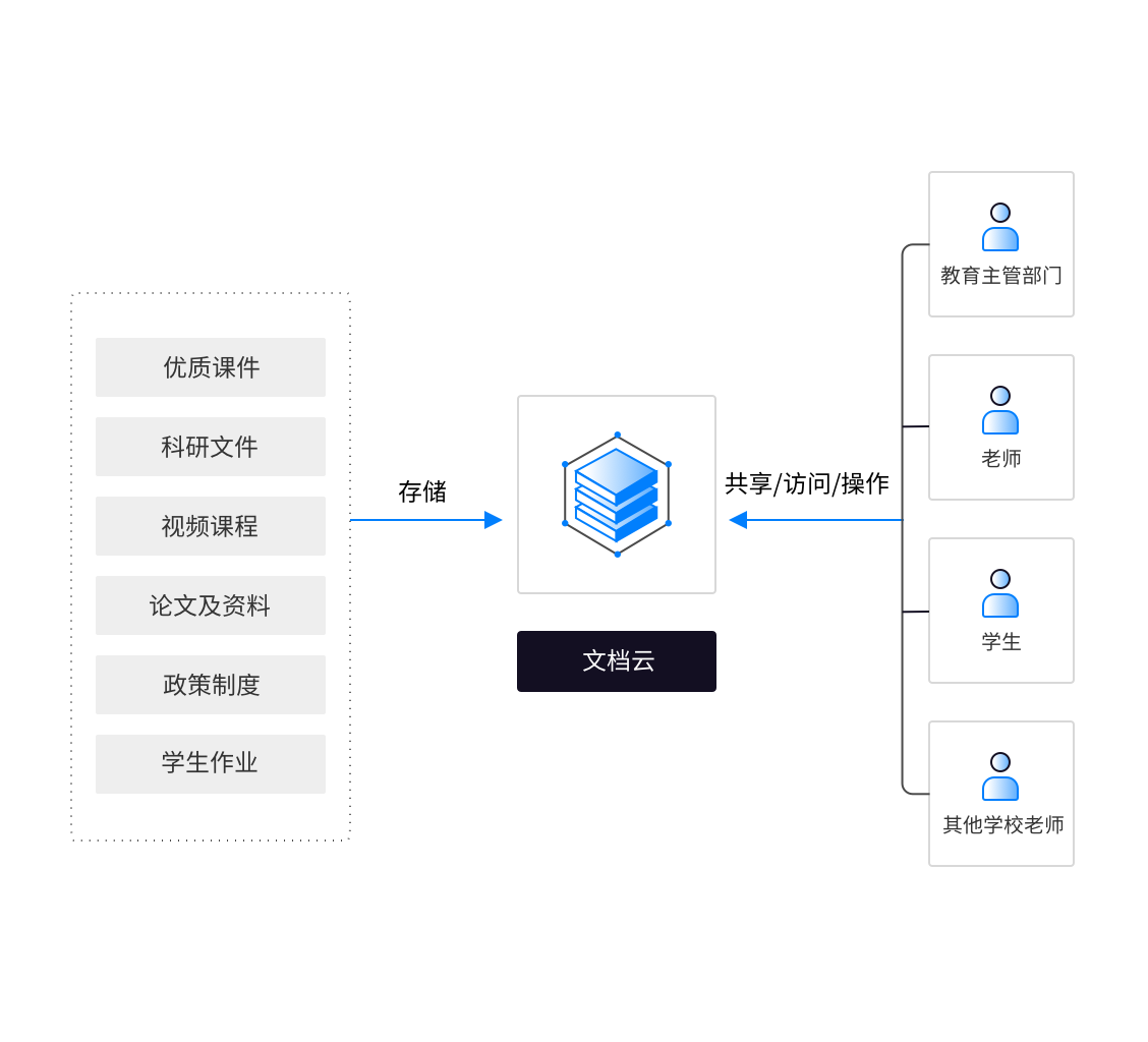 教育主管单位、高校的海量教学资料和科研成果缺乏安全、集中的存储空间,散乱存储在老师和科研人员的电脑里,易造成数字资产流失,难以形成知识沉淀。